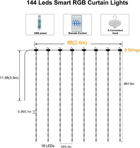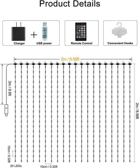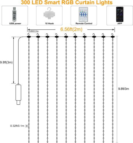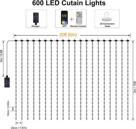echosari Smart LED Curtain Lights 20Ft x 10Ft 600 LED